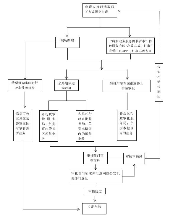 (五)畅通线上线下渠道。线上渠道,开发应用“爱山东”政务服务平台上线的大件运输“一件事”办理专区服务模块,在“公安交通管理综合应用平台”与“爱山东”政务服务平台未完成对接前,申请人可在专区服务模块申请办理《超限运输车辆通行证》《特殊车辆在城市道路上行驶许可决定书》,同时申请办理《临时行驶车号牌》时,系统提示办理途径和方式;待“公安交通管理综合应用平台”对接完成后,实现线上申请办理《临时行驶车号牌》。线下渠道,在市级车辆管理所试点设置大件运输“一件事”服务专窗,通过政务服务平台统一受理申请材料,加强行政审批、公安部门间协调力度,明确受理岗位权限、审批材料流转等方面工作职责,确保实现“一窗收件、网上分发、并联审批”。待总结试点经验后,在全市范围内市县两级车辆管理所和政务服务中心推广设置大件运输“一件事”服务专窗。同时推行导办帮办、预约快办等便民服务,确保企业和群众办事方便,并逐步引导线下办理模式向线上办转变。(牵头单位:市行政审批服务局,责任单位:市公安局、市大数据局,各县区行政审批服务局、公安局,完成时限:10月底)