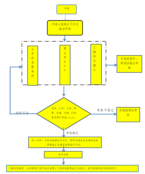 (四)一站服务。重构迭代道路挖掘修复“一件事”流程,明确办理流程、办理时限及咨询电话,企业群众提交申请后,流转至相关部门并联办理。推行全流程帮办代办,提供“一对一”服务指导,制作《临沂市道路挖掘修复“一件事”办事指南》,开展相关政策解读,提市直升企业办事体验感。(牵头部门:市行政审批服务局,责任单位:市发展和改革委员会、市工业和信息化局、市公安局、市住房和城乡建设局、市城市管理局、市交通运输局)